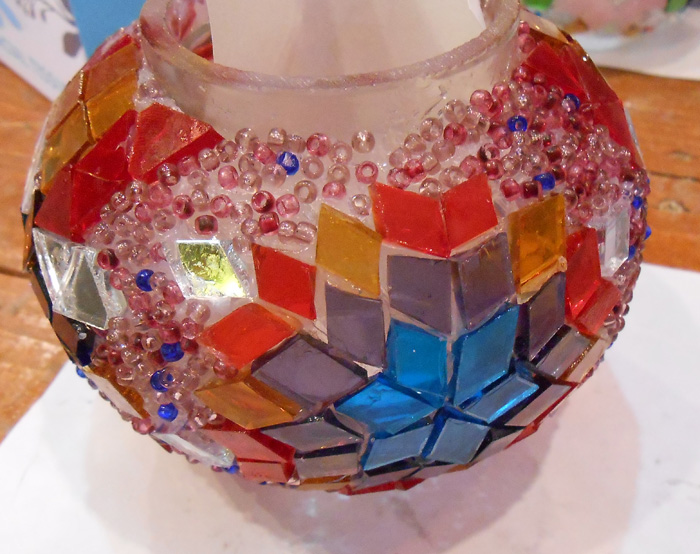 ガラスでメインの模様を作り貼り付け、隙間はビーズで埋めるという感じ。あとはそのあとに石膏で固められるらしいです。完成が楽しみですねー!しかしどのくらいで完成するのかを聞くのを忘れた;