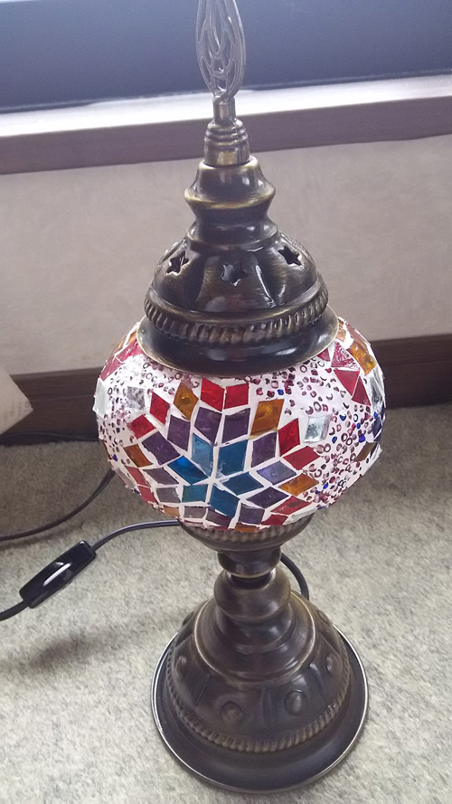 そして本日(26日)、ランプが届きました!けっこう石膏で白くなってましたが、夜つけてみたらものすごく綺麗!!!感動です!
